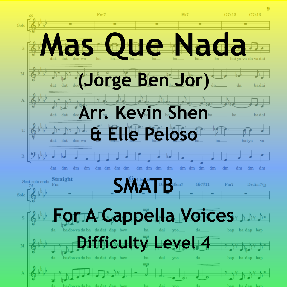 *Featured Scores *All Arrangements *Christmas/Holiday Fakebook All Arrangements Like The Movies (SATB) Take Five (SMATB) Disney Big Band Medley (SMATB) A Night In Tunisia (SMATB) Someday My Prince Will Come (SMATB) Theme From New York, New York (SATB) Pure Imagination (SATB) From The Start (SMATB) You’ve Got A Friend In Me (SATB) Have Yourself A Merry Little Christmas (SMATB) Lullaby Of Birdland (SATB) Sweet Pumpkin (SMATB/SSAB) A Town With An Ocean View (SMATB) Over The Rainbow (SMATB) Blackbird (SSAATB) Footprints (SMATB) Armando’s Rhumba (SMATB) Waiting For Your Return (SMATB) My One And Only Love (SATB) In A Sentimental Mood (SMATB) Wii Medley (SATB) Mr. Sandman (SATB) Billie’s Bounce (SMATB) Mas Que Nada (SMATB) Never Gonna Give You Up (SATB) Incredibles Theme (SATB) Recorda Me (SATB) On The Sunny Side Of The Street (SATB/SMATB) Santa Claus Is The Man With The Bag (SMATB) They Can’t Take That Away From Me (SATB)